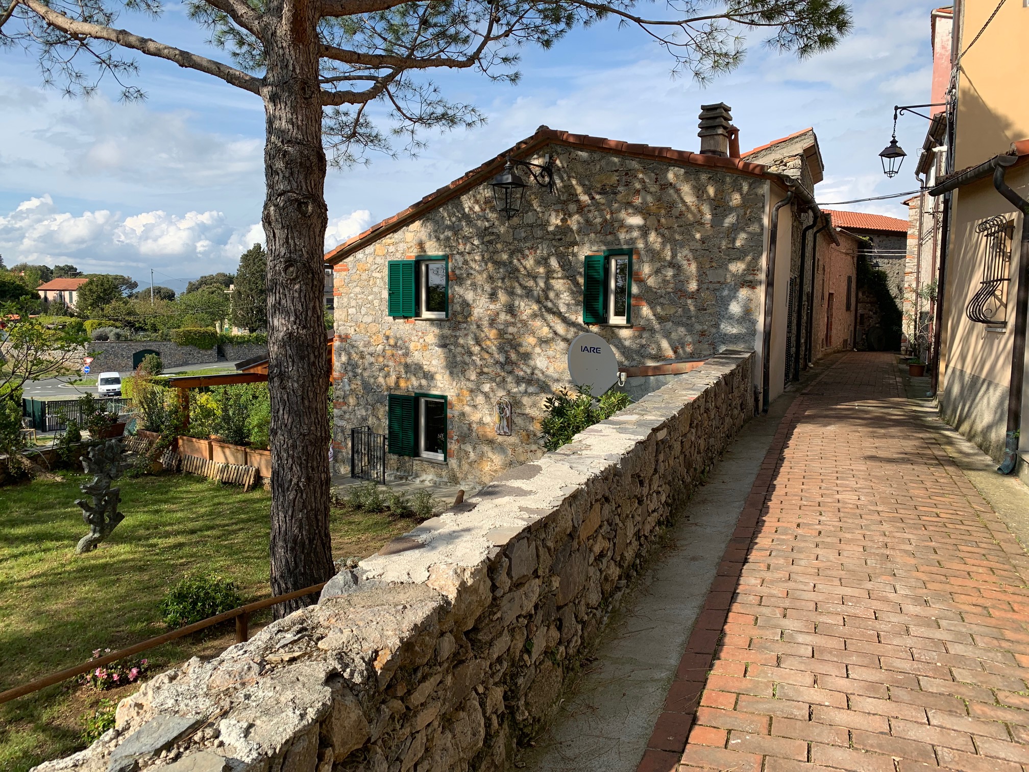 草木が茂る路地の先、まぁ~るいピットのある家