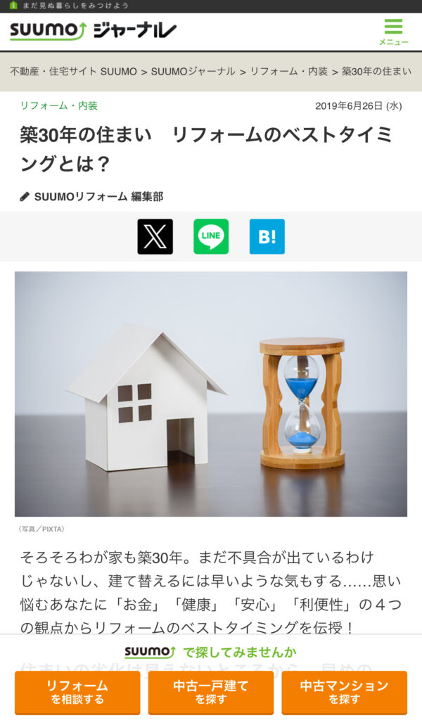建物は適正な時期でのメンテナンスがとっても重要です。SUUMOリフォームのサイトで、数年前に受けたリフォームについてのインタビュー記事が掲載中!住宅のリフォームのタイミングや注意したほうが良い点など 私なりにお答えさせて頂きましたので下記にリンク!
