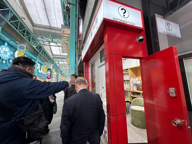 サンロード商店街入り口の”まちの案内所”で何やら色々相談中 まちの更なる活性化に向けて関係者みんなで知恵をしぼり、実現すればとっても面白い計画なる事間違いなし。どんな計画かはまだ秘密