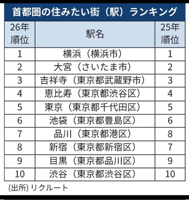 リクルートが、首都圏(東京都・神奈川県・埼玉県・千葉県・茨城県)在住の20歳~49歳の男女9000人を対象に実施した「SUUMO住みたい街ランキング2026」を発表した。ランキング調査は、今回で17回目となる。