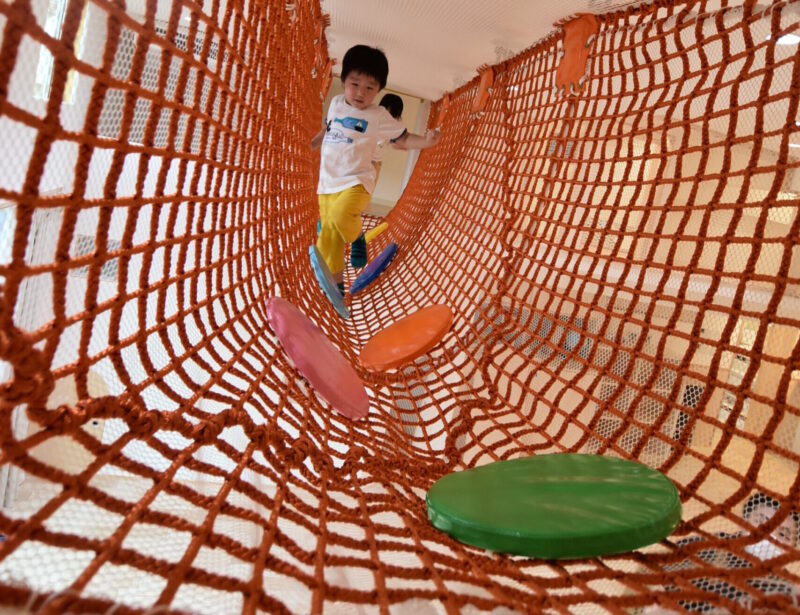 雨の日でも運動出来るダイナミックな遊具も