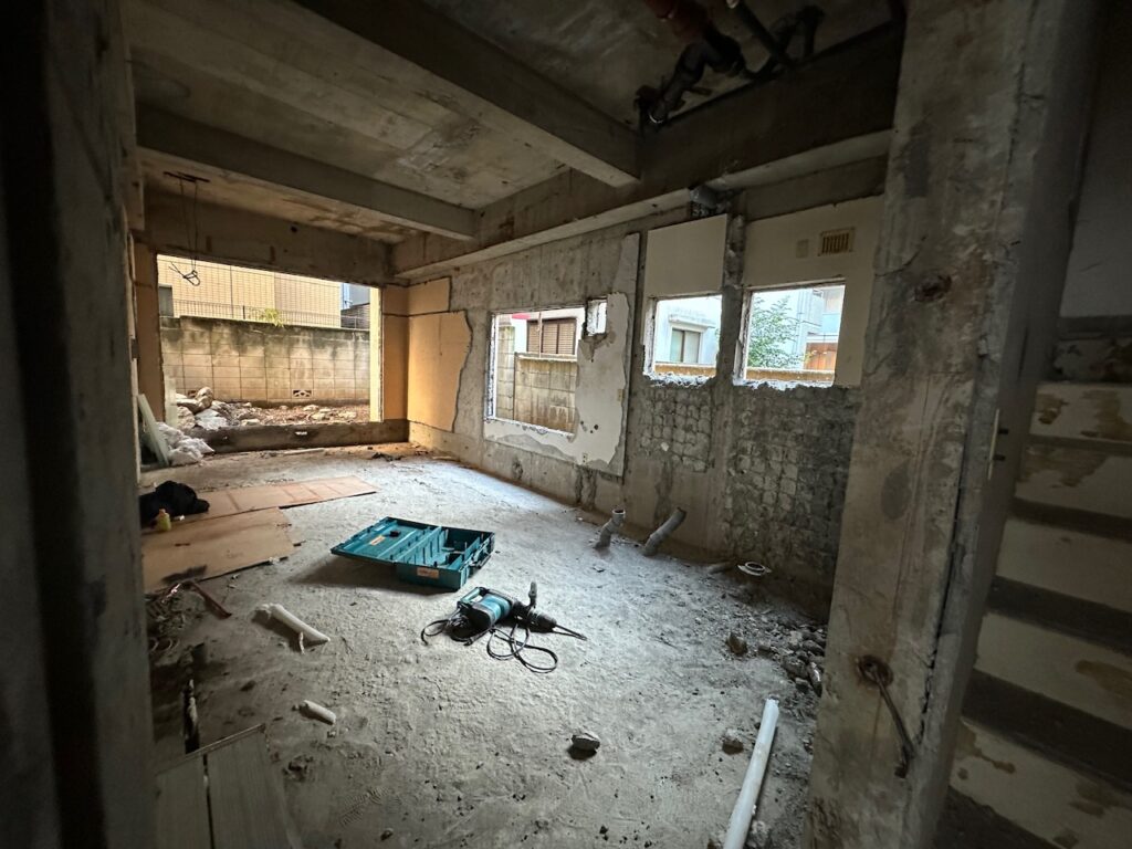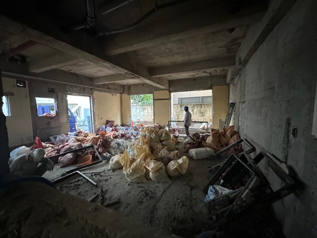 解体工事に着手!間仕切りも解体してワンルームにして保育室として利用します。