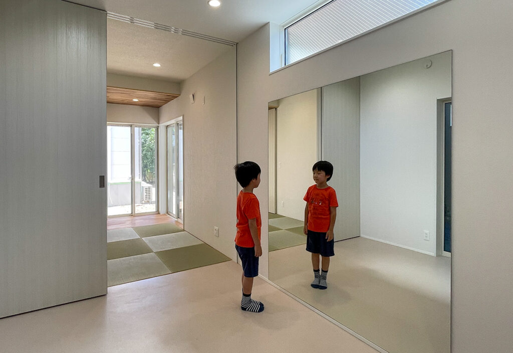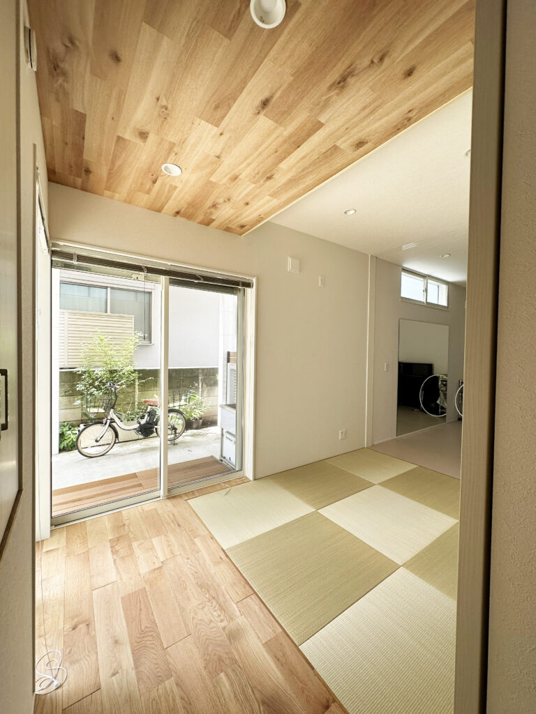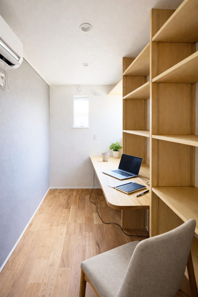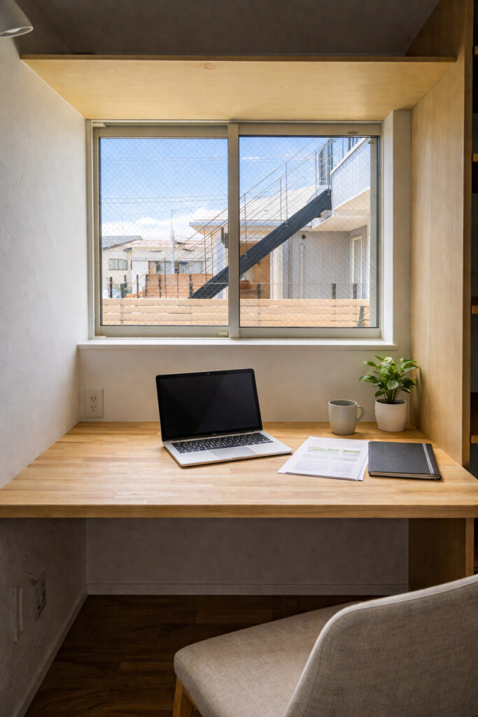 このテラスが見える部分にはテレワークもできるワーク室 こどもが遊んでいる様子を見ながらお仕事もできる